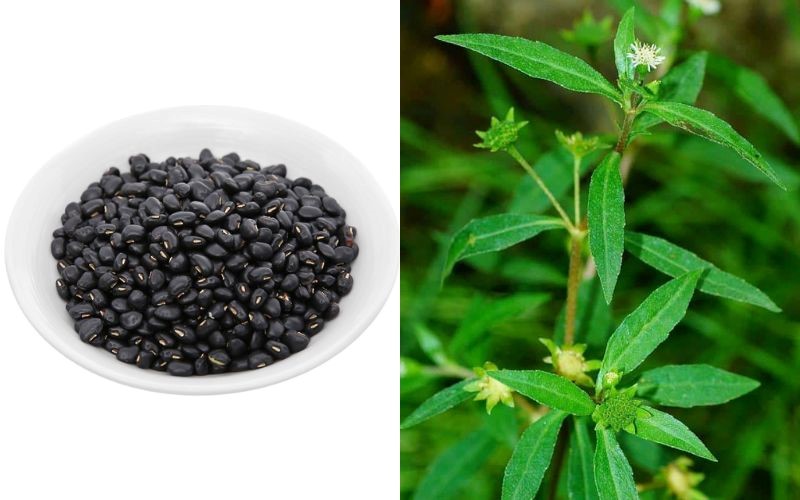 Nguyên liệu chính bao gồm: 40g đậu đen tươi và 30g cây nhọ nồi