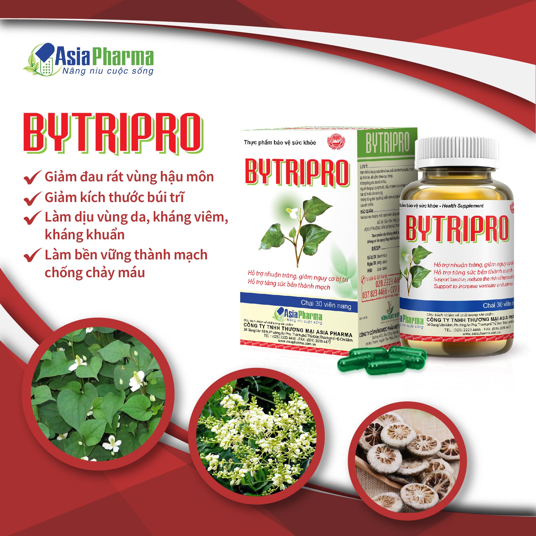 Bytripro giúp hỗ trợ nhuận tràng, tăng sức bền thành mạch, giảm nguy cơ bị trĩ