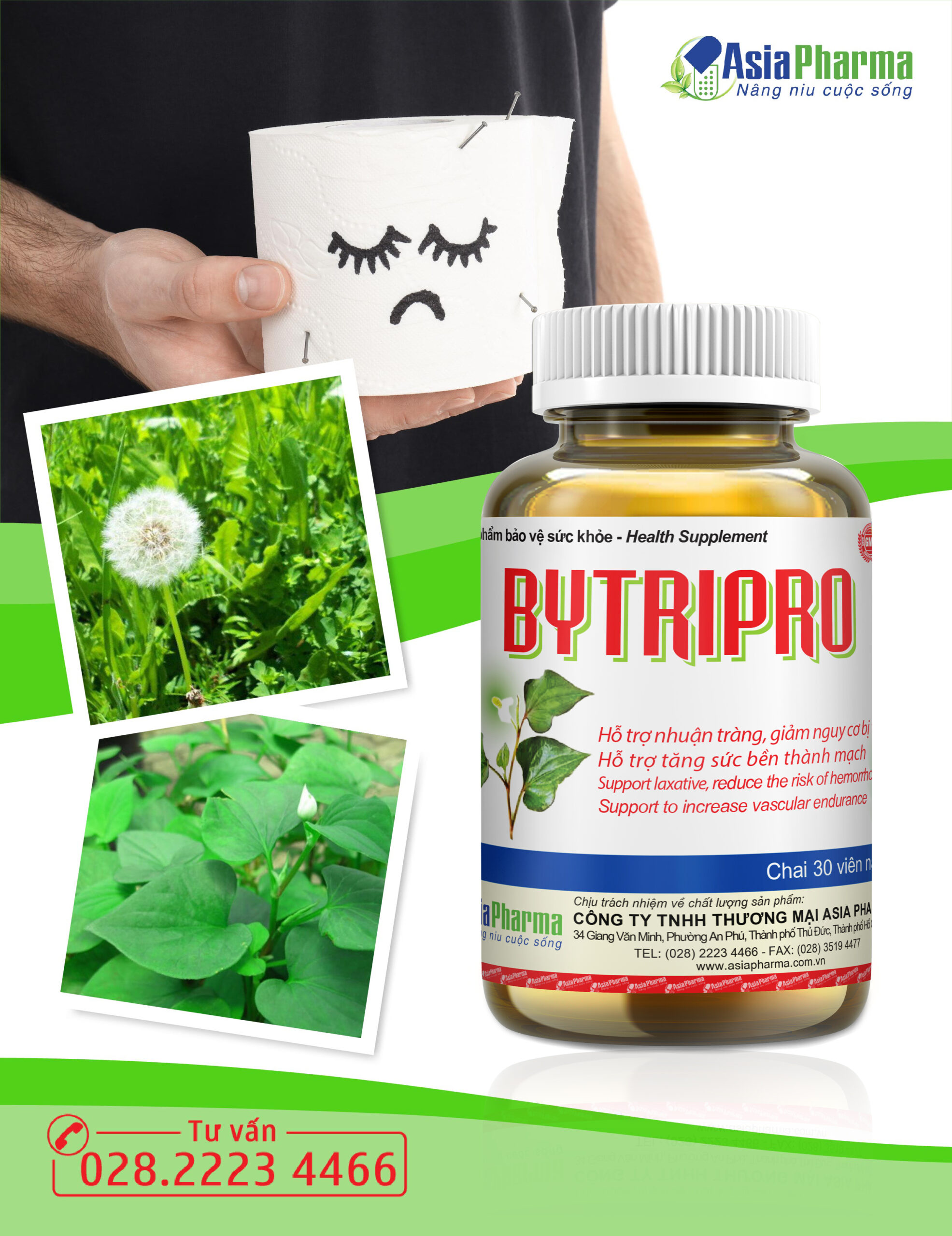 BYTRIPROHỗ trợ nhuận tràng, giảm nguy cơ bị Trĩ – Hỗ trợ tăng sức bền thành mạch.
